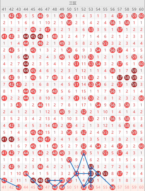 三区间推荐: 43、46、48、49、52、53、56。