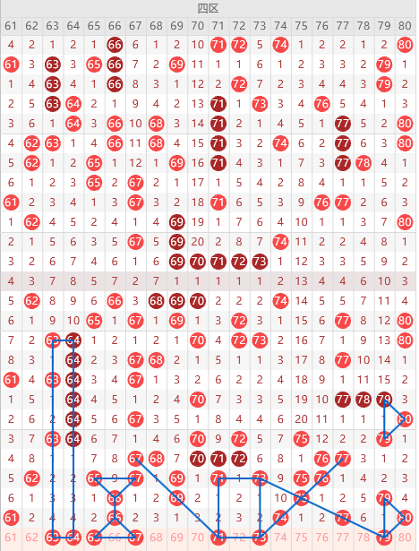 四区间推荐: 63、64、65、67、71、73、79。