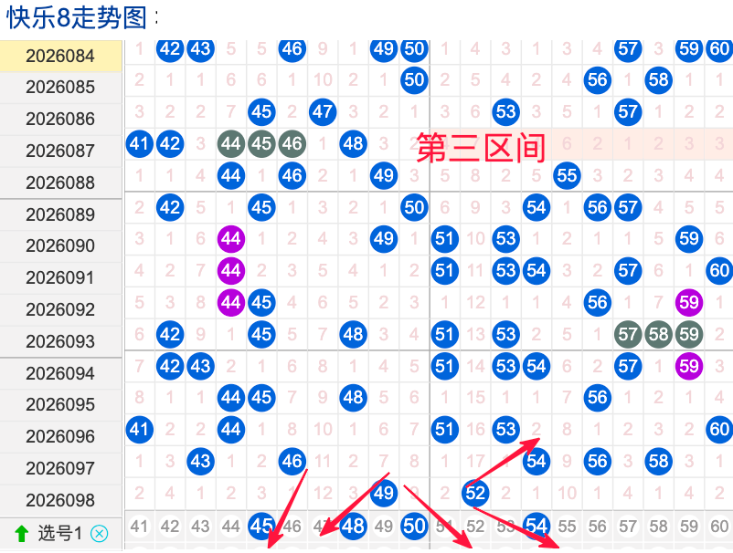 三区间开出了2个奖号(49.52)上期回顾三区开出2个奖号上期的三区间的奖号数量呈现一个递减的形态,4头回补1个,5头回补1个,本期先来看号码45期出现频率相对来说还是很稳定。偶尔有时间隔期数也是很稳定,但是在近期的开奖中较热注意防守,号码48在近 30 期内出现次数相对是稳定的号码,近期的活跃度也是较稳定。号码50有一定的间歇性,通常间隔5-3期会出现一次,没有明显的连续出现态势,走势相对还不是很稳定,在整个第三区间的表现较温热本期还是可以防守的。号码54走势相对近期较热,近期没有连续间隔落号的情况,活跃度近期处于热状态注意防守。