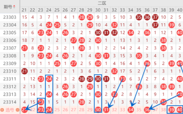 本期的21号数字我们也是要关注一下的,本期的冷号22号数字应该也是出不来,所以有可能会跳到21号数字来。连号空一带号24 26 27号数字上期没能开出重号来,本期我们要注意落下一个号码的情况,重点关注一下24 26号数字的落号情况。本期的30 31号数字我们要注意一下同出的情况,尤其是31号数字我们要重点关注一下,在该区间的31 34 37号数字是属于1路号码,遗漏了3期了,本期应该会出一个号码,我们要重点关注一下。本期的40号数字我们要做一下防守,本期有可能40 80在开一遍。