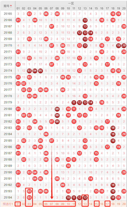 一区:最近一区10期出号情况为:5 6 4 6 1 5 4 3 8 7,总出号情况为48个,平均出号4.8个,本期推荐一区号码回补推荐出号为:01 03 06 07 08 09 10 11 13 15 17。重点关注:03 06 07 08 09 11 13 15 17。