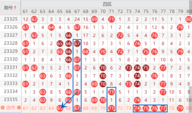 上期开出了63 66号数字的重号,本期我们注意一下64 65号数字出一个号码的情况。本期的67号数字也是属于121走势,可以防守一下出号情况。上期的开出了69 70号数字,本期我们要注意出一个重号的情况。本期的71号数字我们可以关注一下,它是属于181走势,出号机会还是有的。本期的75 76号数字我们要注意一下,这里是有机会出一个号码的。上期开出了69号数字,本期我们注意一下59 69号数字的出号情况。