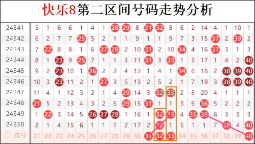 四区本期是一个连续三期的下落走势,这样的区间个数说实话我是看不上的。表面看起来四区是一个热态区间,但是有了三期连续下落的走势,这一期就不好看了,毕竟四个区间都在出号码,这样的走势你让其他三个区间情何以堪呢。尤其是区间上相对集中的号码,对本期布局绝对是一个挑战,所以我认为本期四区相对转冷的可能性比较大,这个时候在四区进行布局显然是不合时宜的。以上仅为个人观点,仅供参考。