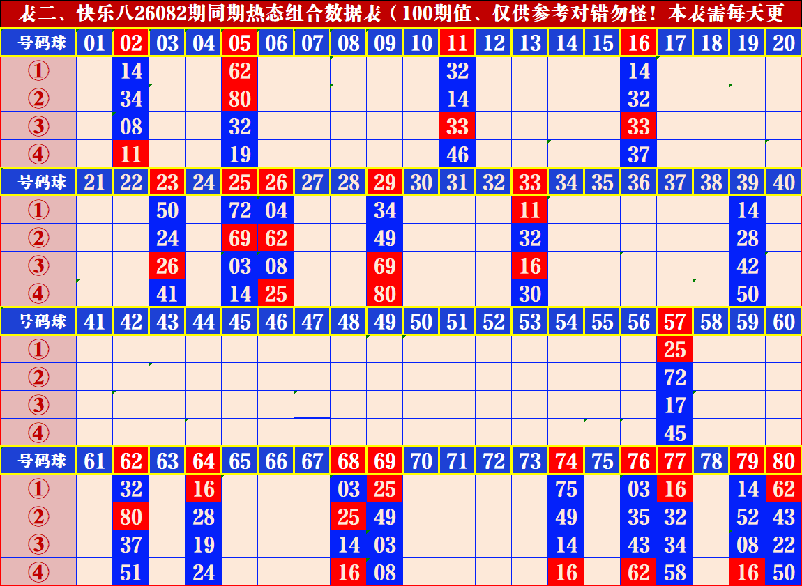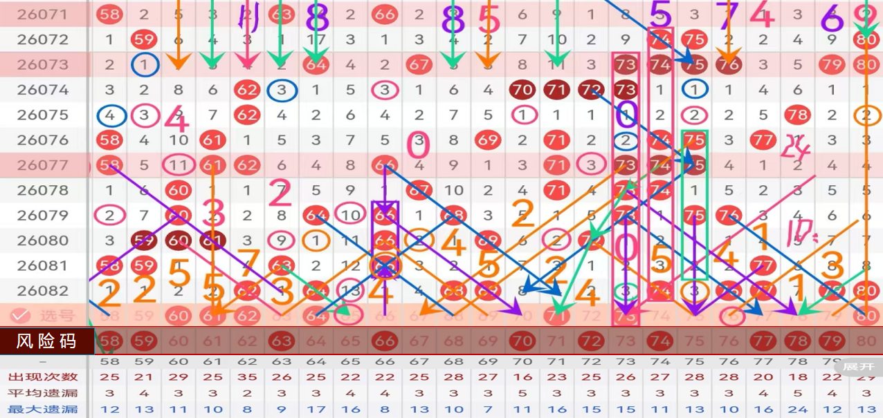 四区间给到主做号码球:61 62 64 71 73 80防守号码:65 67 68 75 76;