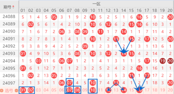 下图为01-20号数字区间走势分析图: