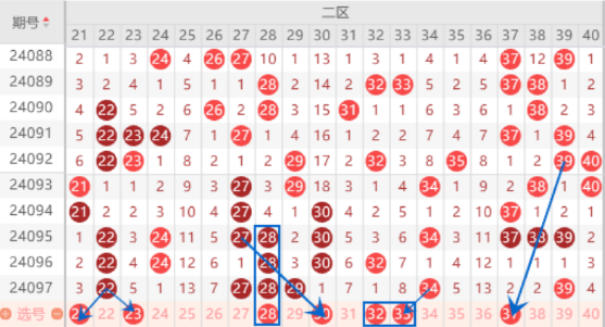 下图为21-40号数字区间走势分析图: