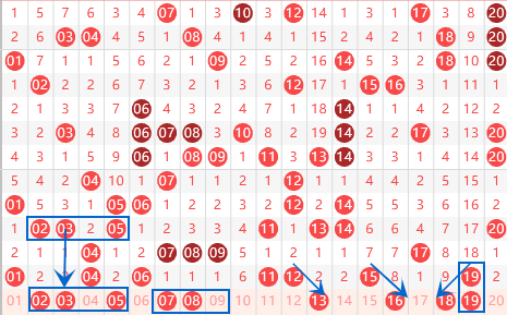 下图为01-20号数字区间走势分析图: