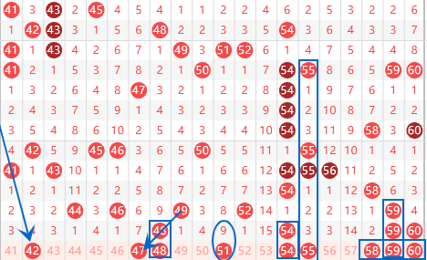 下图为41-60号数字区间走势分析图: