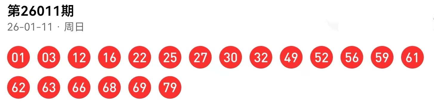 26011期命中9码 25,27,30,49,52,56,61,62,69