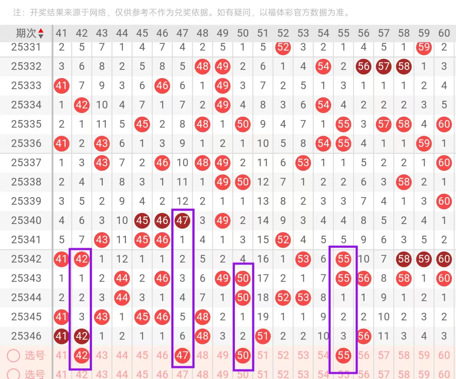 三区41-60:三区间,上一期回补了5个号码的下落,从近期三区间号码下落点位来看,连续走热了两期遗漏,今天我们要重点关注的是三区间空缺位置的回补和大遗漏的下落,在4头,首先我们要重点关注的是41-42重码的一个回补和47-49-2下1的选择,这里可用41-47的搭配和42-49的搭配回补,回到5头位置,今天这里我们要重点关注的是50-52-2下1的选择和55-57-2下1的选择,今天这里可用50-55的搭配和51-57的搭配下落,在这里要重点关注的是55-56的对子形态下落的可能。