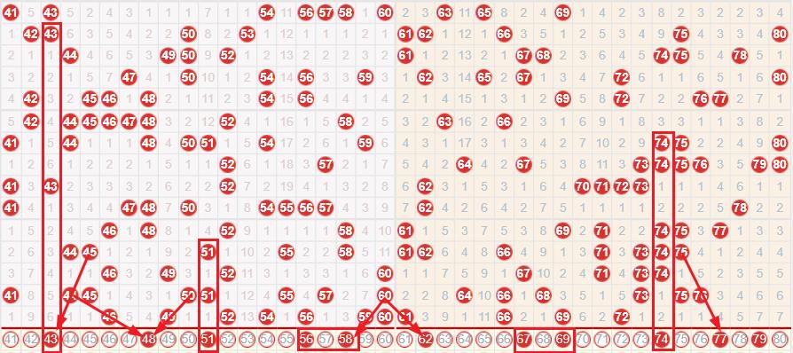 第三小区间41-60上期该区间开出来7个号码,本期的走热的几率也是比较大的本期的43 44的组合和52 57的组合参考下开出的几率也是比较大的这里比较看好55 59的组合的回补的开出本期的51 52的姐妹组合,防47 49的组合开出本期的45 49的组合落号也是比较大的本期的48 49的姐妹组合落号也是比较大的本期的53 55的组合参考下落号也是比较大的本期的51 53的参考下本期的45 54的组合参考下本期的56 58的组合落号也是比较大的