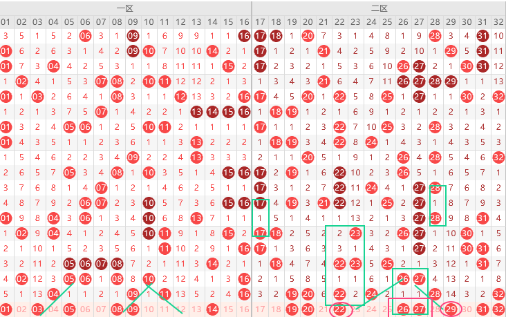 二区胆尾2尾, 22 32二出一,本期笃定二区出重号,19 20 22 24 28 32出一个,2尾最热22 32出一个,看好22,不喜欢22试试32,隔一期号只有26 27二出一,昨天选的23 选错,本期7尾最热27概率最大,其次26,边号看18 31 二出一,龙头看好1开头17 18 19三出一,那么本期关注五码18 22 26 31 32
