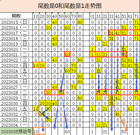 随着昨天尾数0号码的遗漏,本期这个尾数的号码基本就可以预估了,尾数1在同周期开出的号码