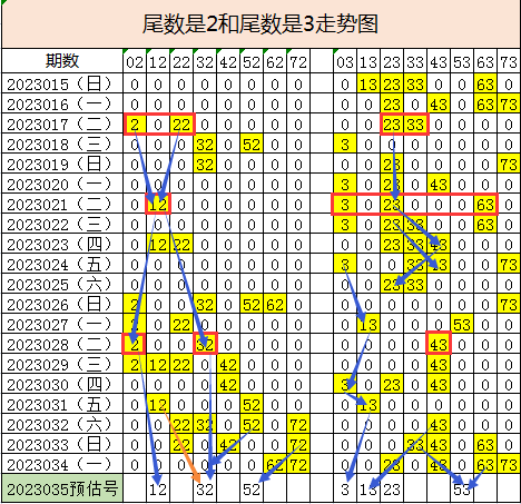 尾数2-3区间,尾数2在同周期的开奖号码走势可以看到,017期号码02,22和同周期