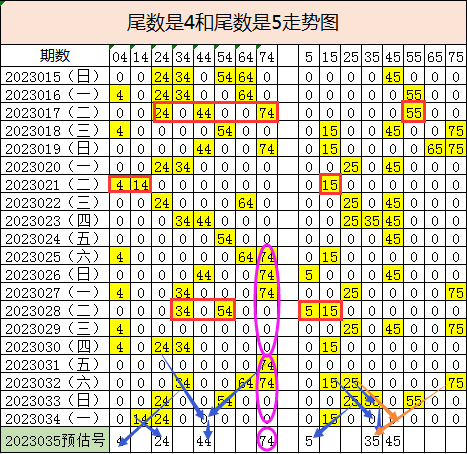本期预测这个号码会回补走出,这个区间本期预估的号码有:04,24,44,74,05,35,45