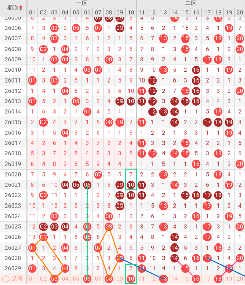 二区开出:11,15,19 奇偶比: 3:0 和值:45 跨度:8,上期开出个3号码,奇数号码占优势。是近期活跃的区间之一,近10期有5期开出3个或以上号码。上期开出11、15、19三个号码,延续了该区的强势表现。该区最大的特点~。热度有望延续,但需注意~。本期推荐关注号码:13、16、18。