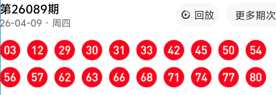 26089期命中9码 29,45,50,54,56,63,68,74,77