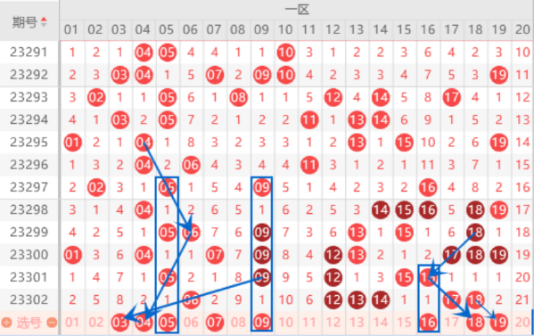 下图为01-20号数字区间走势分析图: