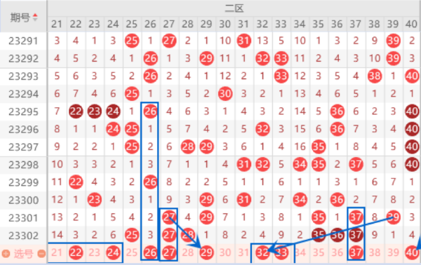 下图为21-40号数字区间走势分析图: