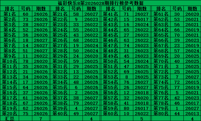 综上所述,福彩快乐8第2026028期推荐号码: