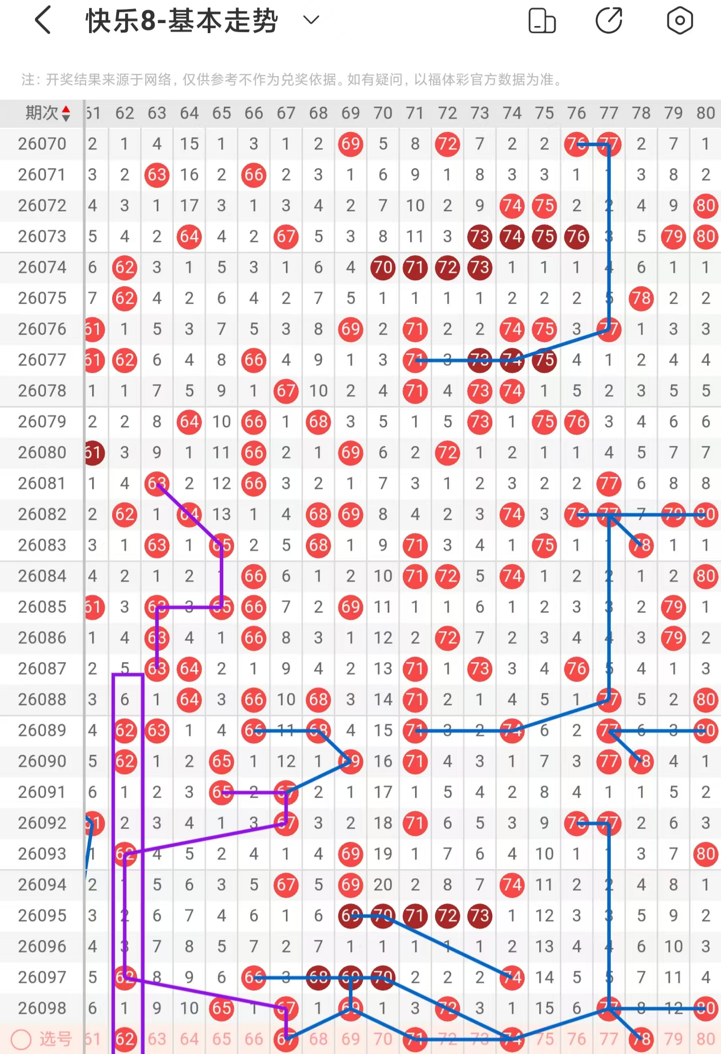 本期注意考虑一区间的稳定落号,二区间减少落号,三区间的增加落号,四区间的减少落号,本期推荐关注05-08-14-17-18-21-25-33-37-40-42-45-53-56-59-62-67-71-74-78。