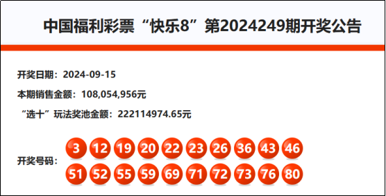 首先我们先来回顾快乐8第2024249期开奖号码: