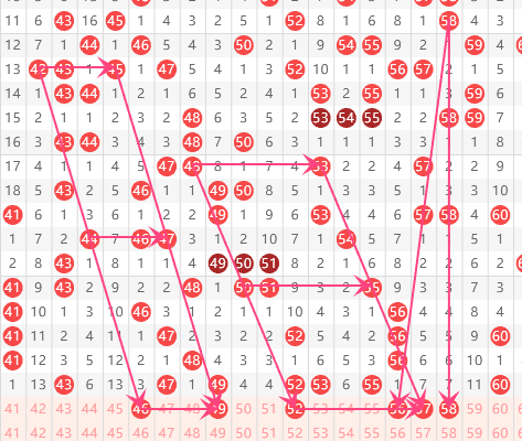 三区分析:【41-60】(走势图标注号码非小黄车大底,请谨慎参考,具体思路