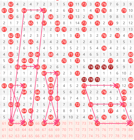四区分析:【61-80】(走势图标注号码非小黄车大底,请谨慎参考,具体思路将在直播间分享讨论)