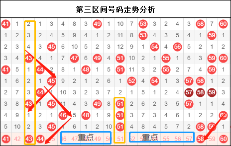 第四区间出现六个号码,其中五个号码是我们预测到的,但是就偏偏没有做这些号码。这说明了什么问题,还是对所选号码没有一个精准的定义,不敢下手去做。所以这也是直播间我一直给大家强调的一定要围攻一个区间的防守去做是很有必要的。除了我们的胆码,单独对一个区间进行围剿。本期四区重点关注蓝色区域吧。