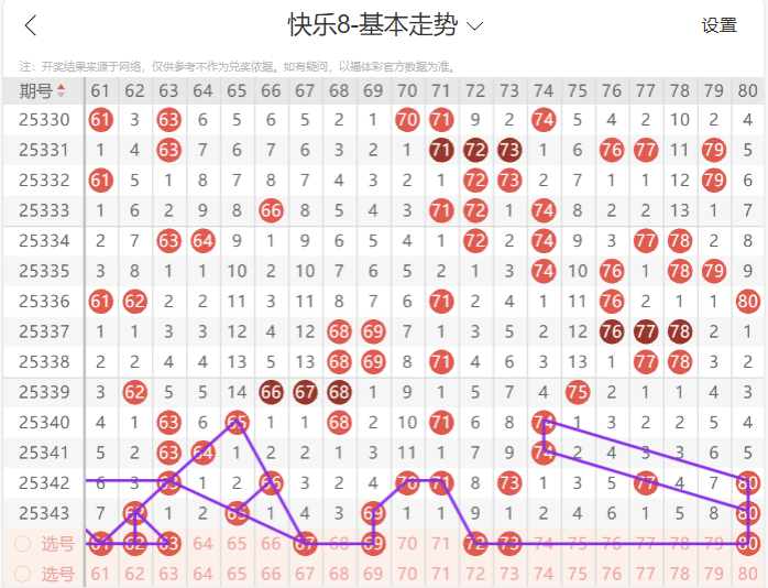 接下来为大家带来快乐8本期号码走势分析,请各位理性参考,切勿高倍,供各位参考。