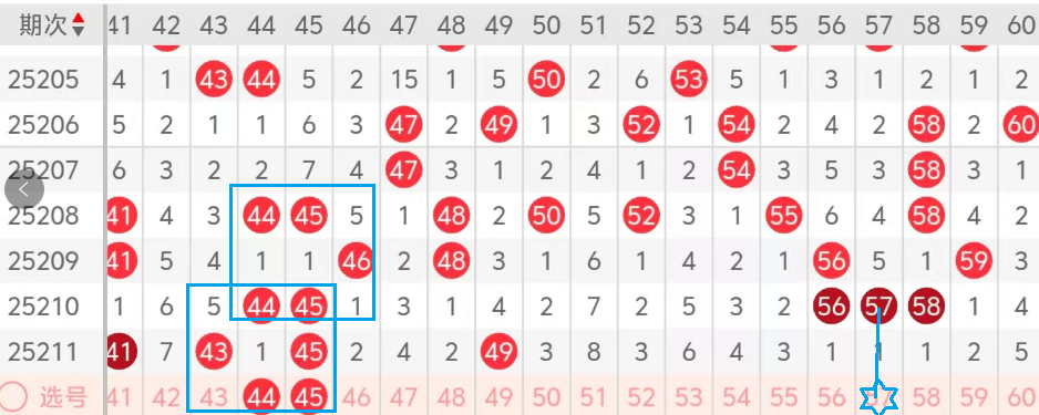 第三区间的走势分析:第三区间上期开出了四个号码球,主要的落号点位在三区间的前半区,走出了四奇的形态,最近的三区间前半区开始有所走热,后半区走冷,今天的龙主看44 45这两个号码球的落位,在这里走出了对称的形态!我还是比较看好的!后半区因为走冷,主看中间码57的回补!形态走势从53 -54 -55 -56到57以及60-59-58到57;这是三期间的分析,大家参考!