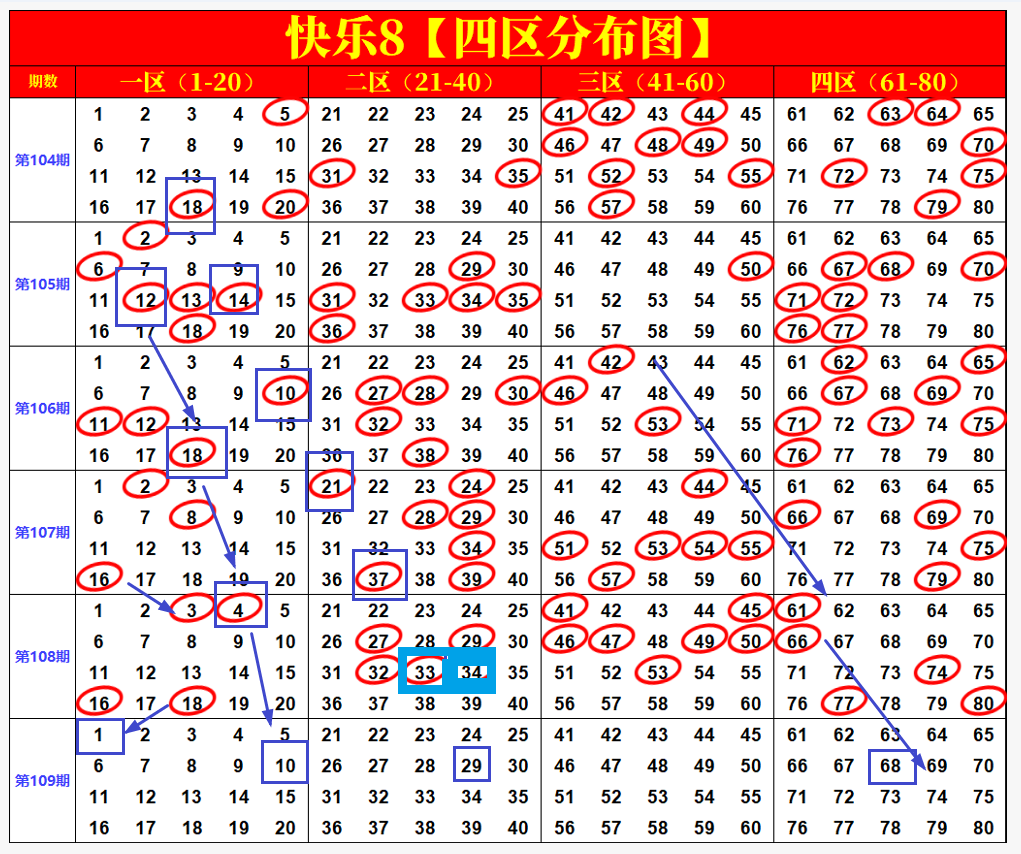 快乐8第26109期四分区分析,上期金胆、银胆命中,今天继续加油!