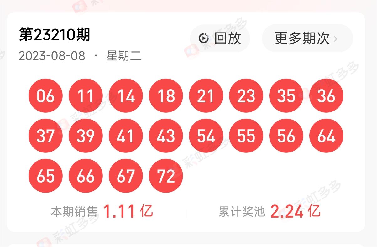 首先回顾上期的开奖号码:06 11 14 18 21 23 35 36 37 39 41 43 54 55 56 64 65 66 67 72