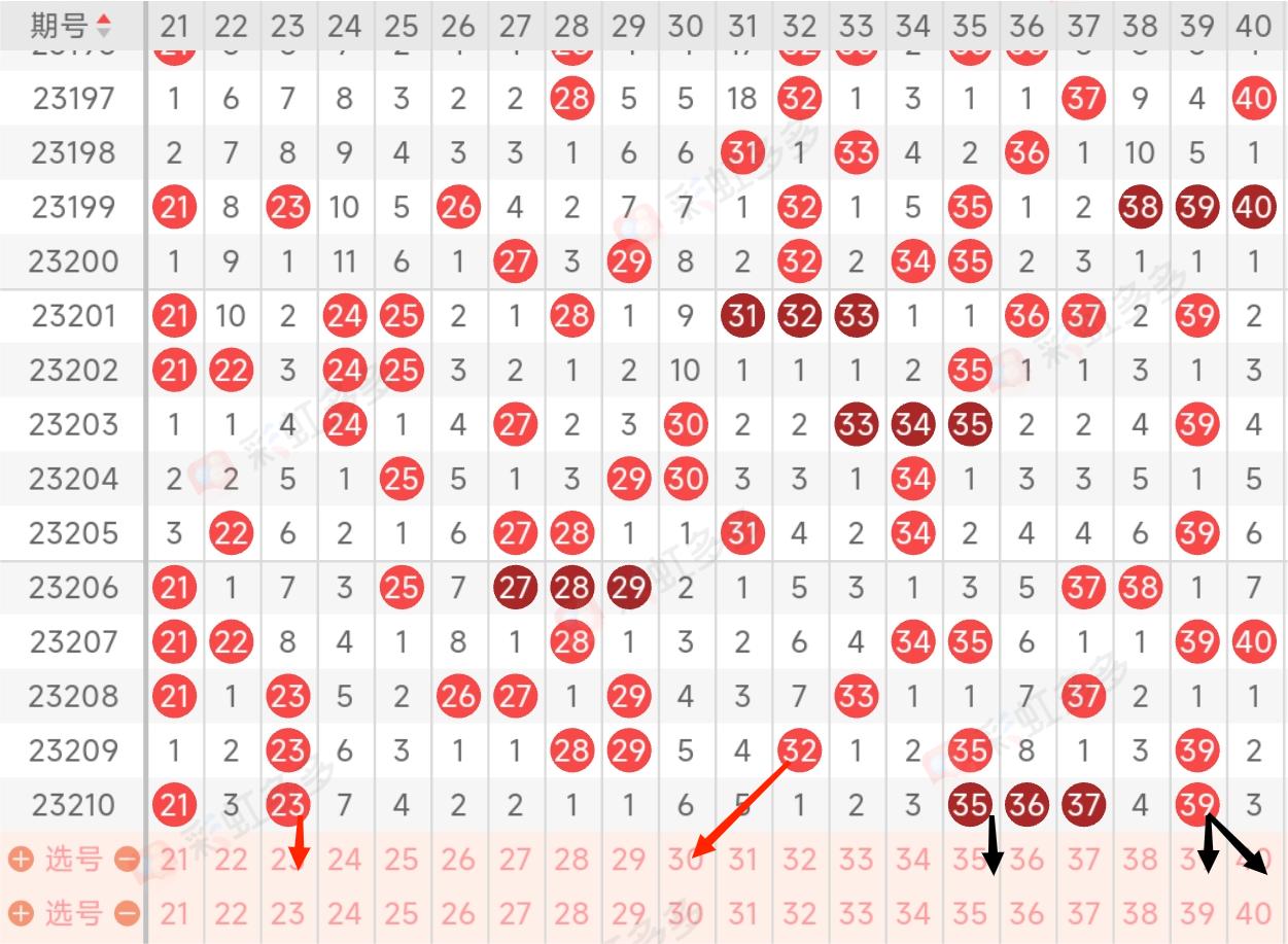 我们看上期23210期的重码有06 18 23 35 39 41     有6个号码球连出,23号球已经三连出,06号球 18号球 35号球 39号  41号目前2连出!