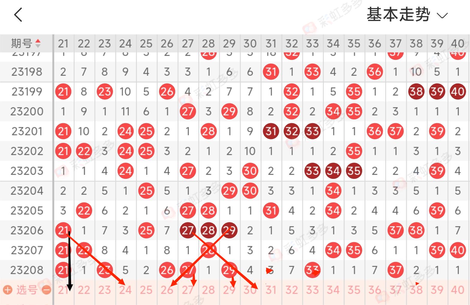 我们看上期23208期的重码有21 53 61 80 有4个号码球连出,21号球已经三连出,53号球 61号球 80号球目前2连出!