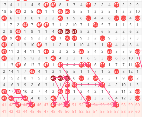 三区分析:【41-60】(走势图标注号码非小黄车大底,请谨慎参考,具体思路