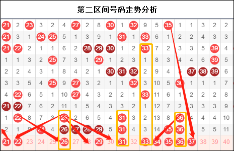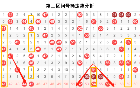 四区永远是一个让人头疼的区间,从区间比上我们似乎看到了它逐渐在减少号码,但是在走势上却不属于任何一个区间。究竟孰轻孰重,是不是真的很难抉择。但是在四区有一个有趣的现象就是现在开奖号码居然出现了递减式的间隔,6-5-4的格局似乎蕴藏着我们想要捕捉的某种走势,所以四区也许本期还不是掉以轻心的区间。不妨注意一下两边的号码。