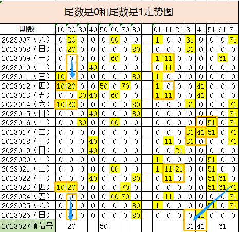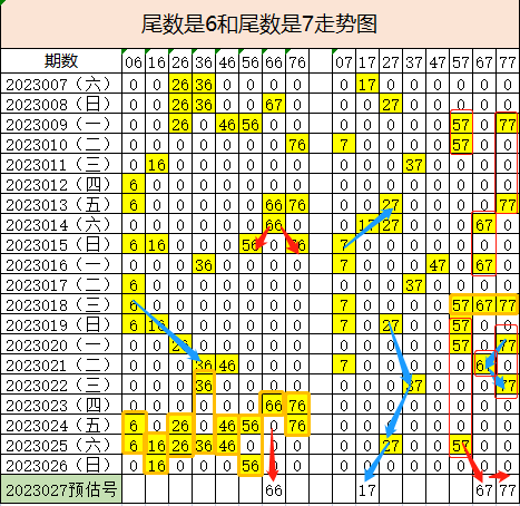尾数0在025期开出43次,尾数7开出33次,026期尾数6开出42次,