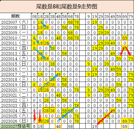 025期尾数8开出47次,尾数9开出38次,026期尾数8开出47次,尾数9开出41次,