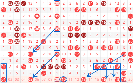 该区间的01号数字本期我们可以注意一下,上期开出了61 71,本期有可能会01带出来的。本期的05号数字我们可以防守一下,05 07 09三斜连号码,出号机会还是有的。连号08 09 10本期我们也是要注意出一个号码的情况,重点考虑一下09 10号数字的出号情况。上期的连号空一带号15 16 18号数字没有出重号,本期我们要注意回补一个号码的情况,可以在这里可以定一个胆码出来的。