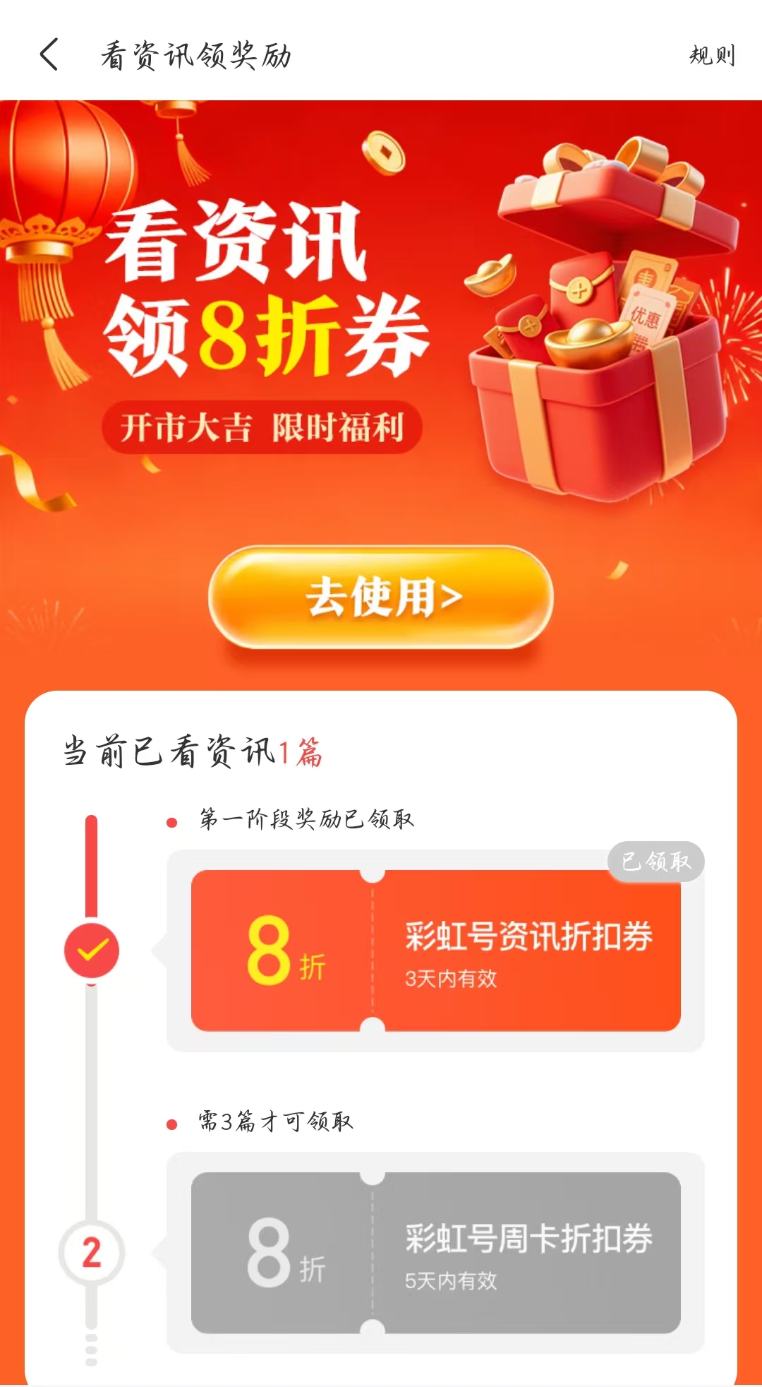 再阅读2篇领彩虹号会员周卡8折优惠券