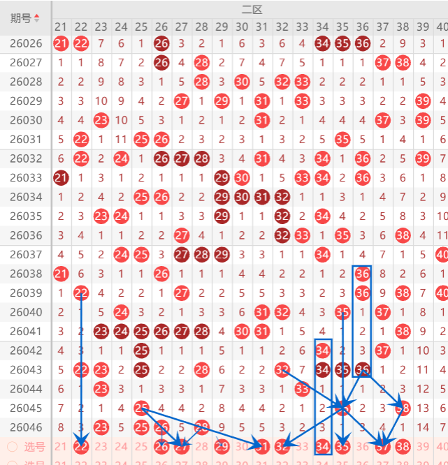 二区间注意打底号是22.27.29.30.31.32.33.35.38.40中关注2-3码开出机会,