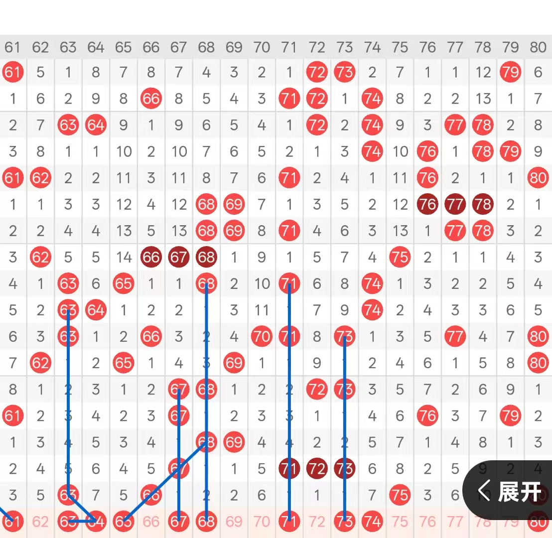 四区:四区间上期开出了四码,六字的头部位置,给到了五期遗漏下落等距五的63以及中部位置斜连号码五期遗漏下落的66。7字头则给出了中部位置八期遗漏下落的75以及尾部位置双重空四下落的八零头部位置处于放空状态,本期6字头我们可以关注到63码的分边62,64两码可二选一,其次,该位置我们需要考虑分边的时候,必须把60箱以及60两码可带出一码来。其次6366两码五期遗漏,在本期可关注一码的做成,尾部位置67,68,69三码,本期可防守1~2码开出,优先考虑67,68两码。7字头本期头部位置我们可关注到7172733码连号的空一回补,优先考虑71与73。中部位置75,以孤码形态开出。本期可关注分边号码74,其次尾部位置只需要考虑到一码80的座重即可。