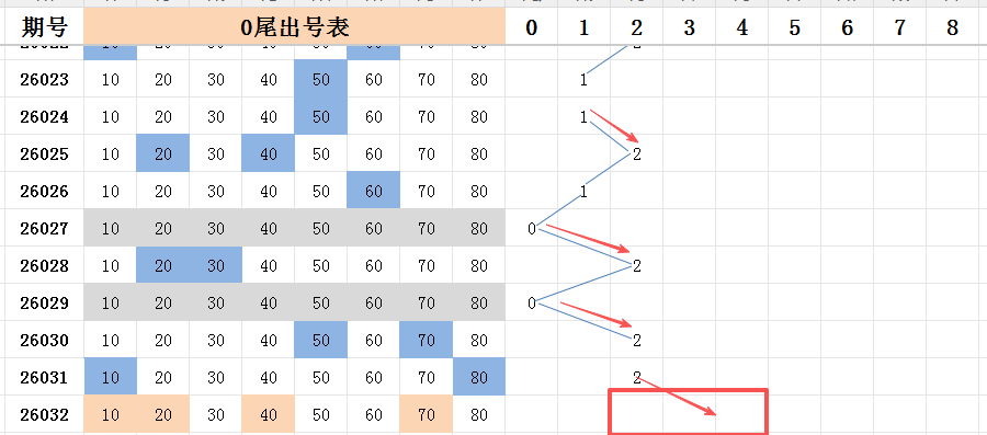 本期看好开出的范围是两码走势至四码走势之间。0尾上期再次开出两码走势,选择0尾和选择八尾的号码类似,可以考虑0尾的两个首码号码10和号码20能开出其中一码。