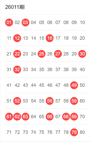 26011期命中9码 25,27,30,49,52,56,61,62,69