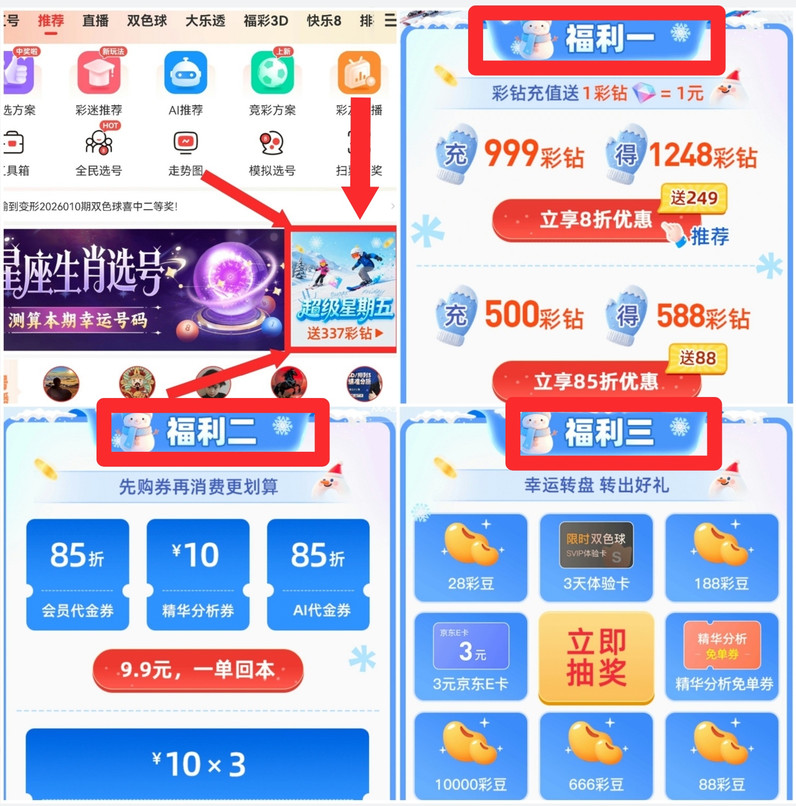 ①九五二柒文章上端蓝色链接②一起彩app启动页面③推荐页面运营流动版图④平台签约主播直播间,彩豆、彩钻、体验卡、免单券等等,等你来解锁!