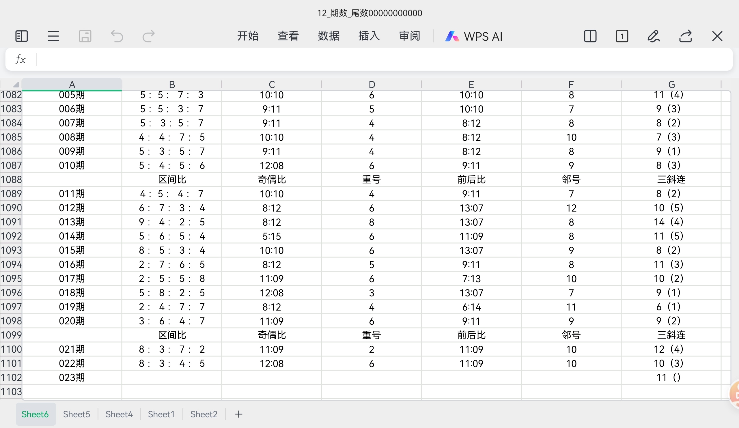 区间比8:3:4:5 奇偶比12:08 重号6个