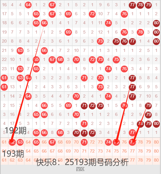 回顾25192期开奖号码:01 09 18 21 23 25 29 40 45 50 52 58 60 65 66 68 70 71 72 77,最近一段时间号码爆区几率特别高,目前已经连续多次出现爆区热开的情况,爆区之后基本上都是迅速回调,转换至其他区间继续暴热,大家若是能抓准区间,或许有很大的机会,但是号码的变盘规律是非常的快,很难把握,个人建议谨慎选择,不要 盲目的去操作~~