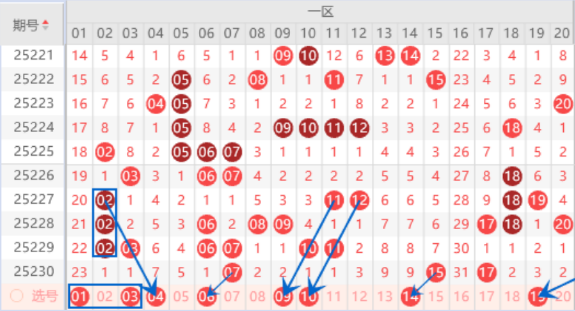 下图为01-20号数字区间走势分析图: