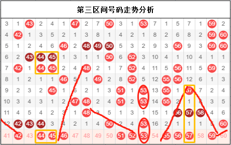 第三区间号码41-60,明显第三区间昨晚的开奖号码是回补冷号了,42 43 44 50 60,一个区间六个开奖号码,其中五个号码属于补冷,这真有点为难了。如果依照之前的走势,补冷之后号码势必要重复了,那今晚三区应该会出现重号主攻的走势。当然了,我们刚才讲是前期,三区走到现在,重号是不是还能重拾攻势,那也只能是大胆猜想一番了。
